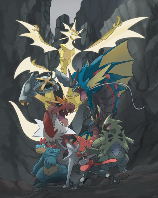 The art itself looks excruciating and shows amazing emotion! I couldn't imagine this being any better in my point of mind. The colors on each legendary contrasts very well with vast white background. The female on the bottom looks very happy; almost how I can imagine how you were when playing these games. This goes to show how well you've done with this! Yet, I have no clue why not many people have praised this, xD