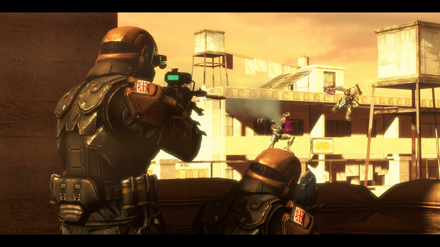 Government of Ordered Earthen Democracies (G.O.E.D.) Marines | 7th Marine Regiment, Gamma Company | Year 2341 | Second Marauder Crisis | Mars, Mawrth Vallis City | 9:04 A.M. H.S.T.On September 22nd 2341, an unknown space vessel blocked G.O.E.D. scanners and picked up ramming speed towards the G.O.E.D. homeplanet of Mars. Trajectory simulations of the ship made an educated guess that there were no specific target(s). The ship in question, while not scannable at the time, was noted to be that of a defensive frigate generally meant to protect larger more vulnerable ships. Not only that but the design of said frigate was comparable to those used by Follen, though they deny of having any ships within or around G.O.E.D. territory. As the ship sped towards the red planet it's defensive batteries kicked on and began deterring any intercepting ship, torpedoes, or missiles.