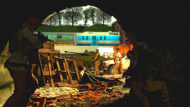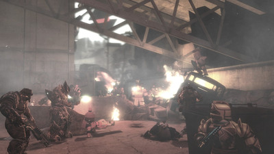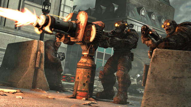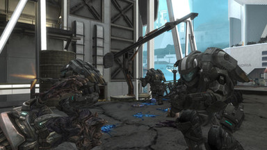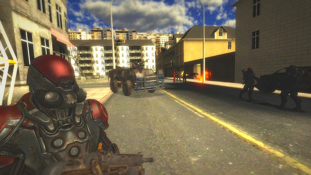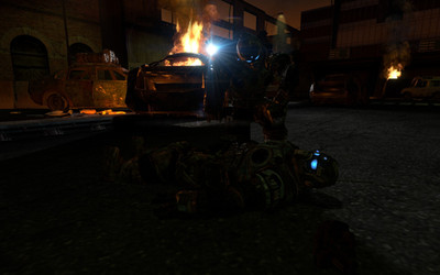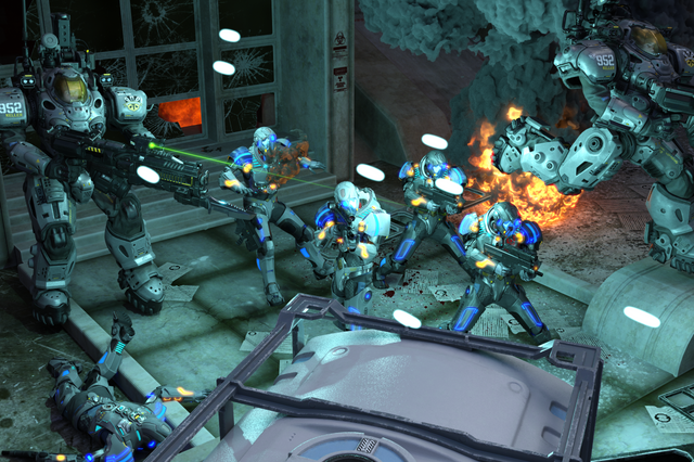 General armaments for F-E45S drones include, but are not limited to, well everything. From Follen GPR's to the dispersion carbine held by the robot in this picture. Those wanting to know what a dispersion weapon is; Dispersion weapons have the capability to completely vaporize an object. For example take the corpse on the right. Originally that guy was wearing a helmet but was hit by the robots dispersion carbine. Their helmet was completely vaporized and the heat generated during the helmets disintegration quite immediately and literally boiled the person's head causing it to sloth off and away once they hit the ground.