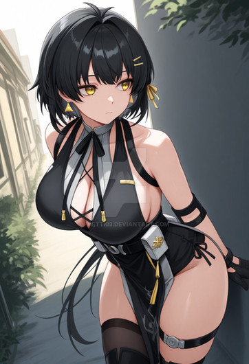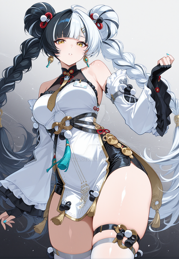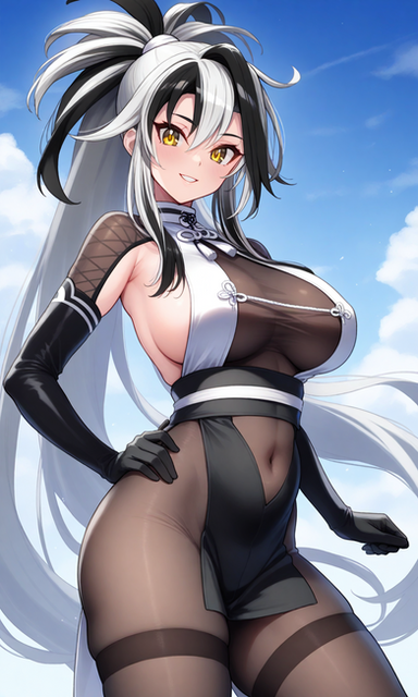 #animegirl #digitalart #fanart #blackhair #glove #longhair #smile #thighhighs #thighs #videogamecharacter #whitehair #1girl #yellow_eyes #elbowgloves #looking_at_viewer #evertale #multicolored_hair #blackthighhighs #black_gloves #two_tone_hair #covered_navel
