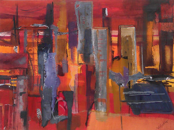 For some reason I was captivated and charmed by this dun coloured but lively evocation of a city. I went to the trouble of viewing it upside down and really feel that anotrher copy should be displayed this way in your gallery. It has the wet look of some city by a waterway, seen in the rain; possibly a lesser known part of Manhatten.