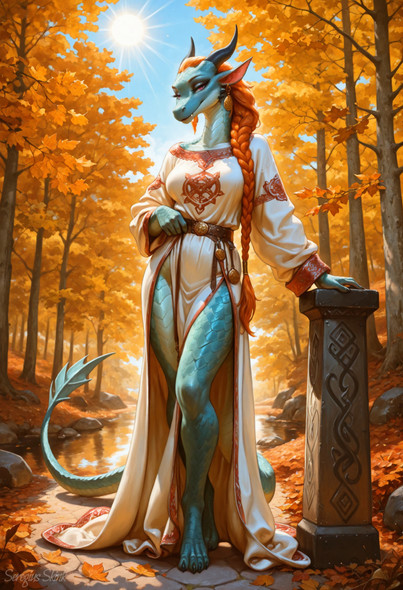 #dragon #scalie #ai #anthro #autumnleaves #big #drake #fall #female #furry #kobold #maple #maples #seasonal #trees #largewoman #bigfemale
