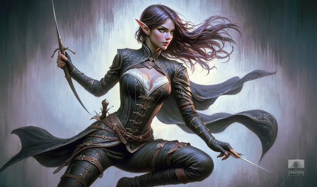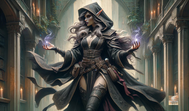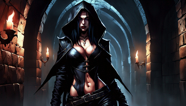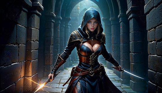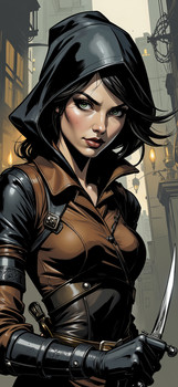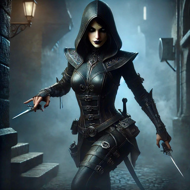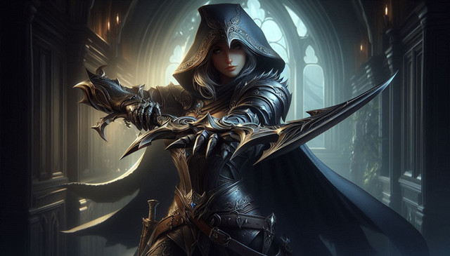 #assassin #beautiful #black #daggers #hooded #human #knives #mtg #rogue #sneaky #stealthy #token #woman #ai_artwork #magicthegathering