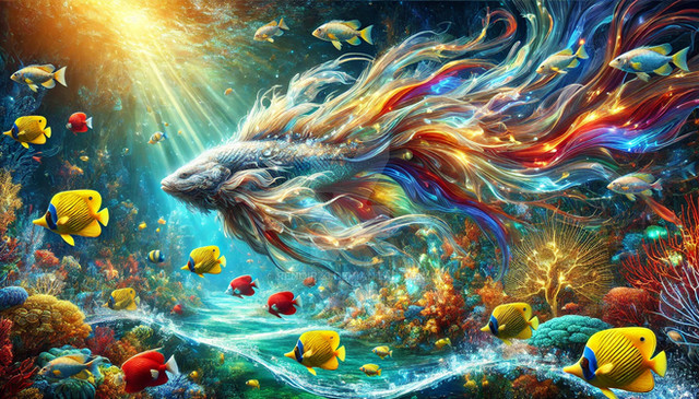 #animal #beams #beautiful #colorful #creature #fish #light #ocean #ornate #prismatic #rainbow #sea #swim #underwater #ai_artwork