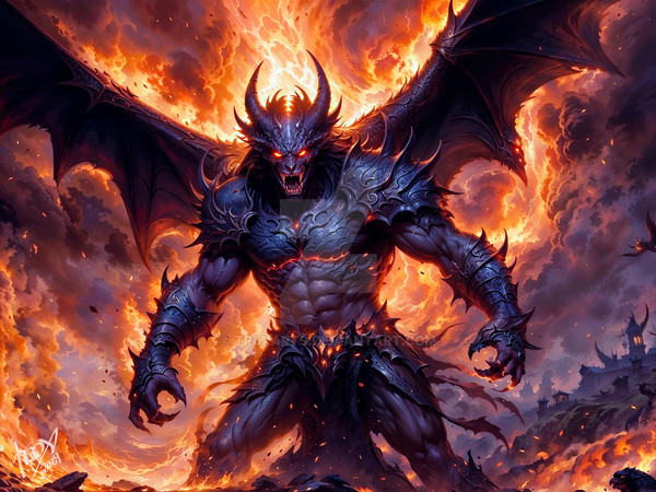#angel #demon #evil #fiery #flying #hell #magic #monster #mtg #satan #spawn #supernatural #winged #rakdos #fire #ai_artwork #mtgmagicthegathering