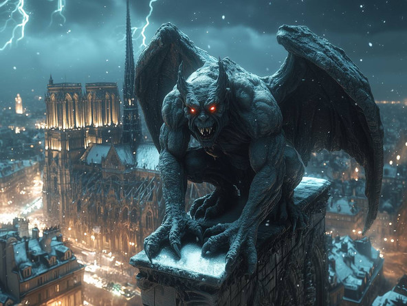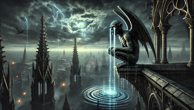#awakening #blue #building #dark #gargoyle #gothic #monster #mtg #stone #sunrise #wallpaper #ai_artwork #magicthegathering
