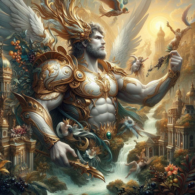 #blue #buff #character #fantasy #god #greek #magicthegathering #mtg #muscular #robe #roman #ruler #staff #temple #white #azorius #heliod #ai_artwork