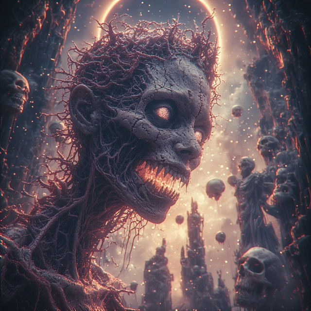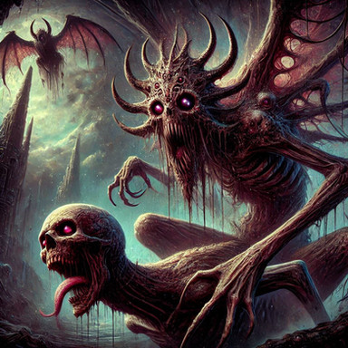 #digitalart #horror #monster #creature #macabre #black #demon #eater #evil #fantasy #fireeyes #hellspawn #horrific #mtg #playmat #tongue #undead #ai_artwork #chatgpt