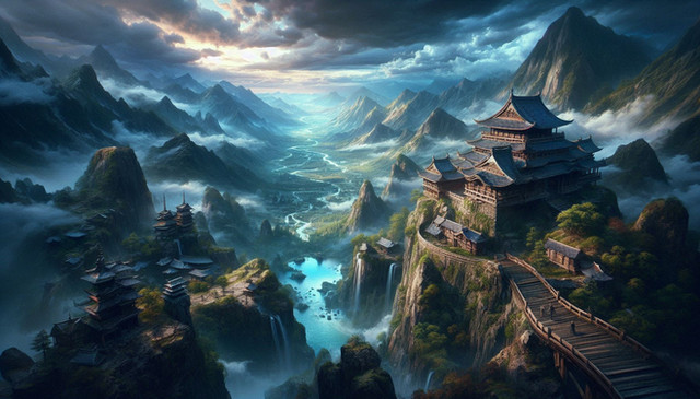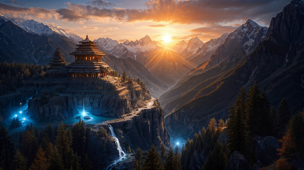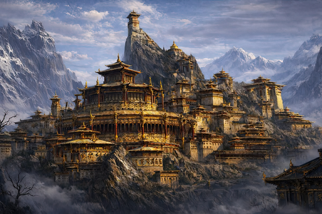#architecture #building #castle #cityscape #hills #landscape #monastery #mountains #mtg #oasis #religious #ai_artwork #magicthegathering