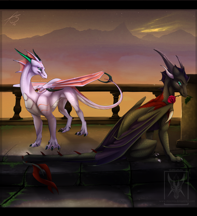 Pure Light ship pic commission of Tundrine and Grail as adults from Desrosaur <3After a long day's work at the temple, Grail returns home to find Tundi all dolled up and ready for a long night it you know what I mean~ ;D Tundi you naughty derg you~