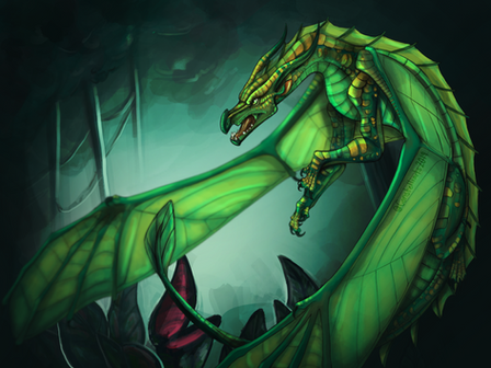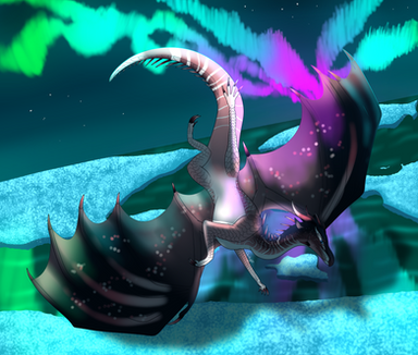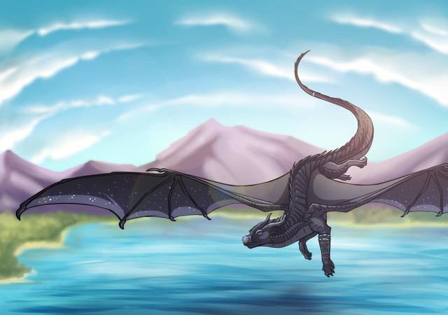 So sorry on how late I am to comment on this. But this is really gorgeous! You did an amazing job with the background, the blue and pinkish work really nicely with Merlin's deep red scales. I love the detail you put into each scale and just how clean the whole image is, this is really fabulous. He's definitely a complex character but you got everything correct! Thank you for trading with me, it was a pleasure ^_^Β