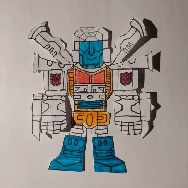 Ultra Magnus built a unit of Constructicons to be based in Autobot City. He decided to colour these after Autobots in the city, giving their unit leader Shieldwall a colour scheme based after himself.Shieldwall forms the left arm of their combined form Erectus.