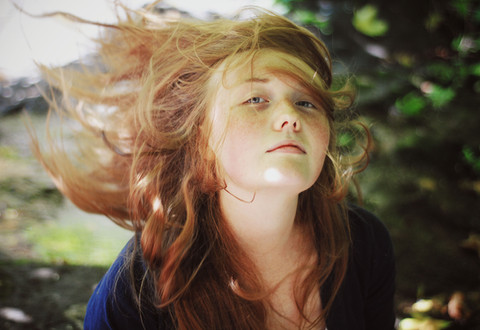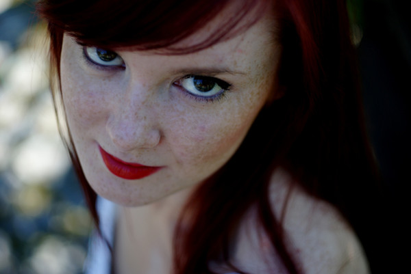 This is a really comforting picture, despite the not-so-happy expression on her face. The level of lighting that's reflected in her eyes is just right, and the red hair - while not as apparent as in your other pictures of her - is simply amazing.