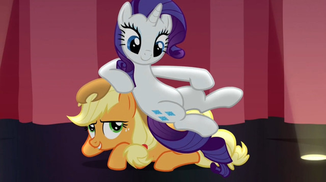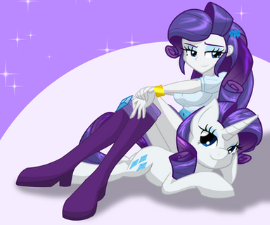 Since Pony Rarity met Human Rarity, they seemed to have a nice girl time. And it appears that Human Rarity is giving Pony Rarity a very cute belly rub.Related content
