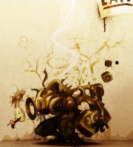 I'd like to know that, too. Awesome work! I assume the Akira reference is the swollen guts-lookin' stuff that looks like Tetsuo's arm? haha