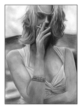 I love how you captured her smile, her lips and especially her eyes. I like that there are black areas and some white ons, you definitly are very talented