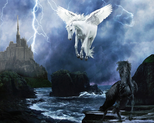 #bat #black #convulsion #fantasy #grey #horse #manipulation #pegasus #white #wings