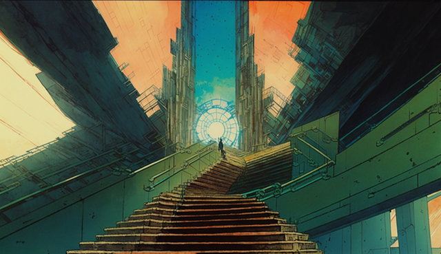 So intriguing! It just makes you wonder so much; what is the person's job? where do those steps lead to? how far do they go up? what is that great pillar supporting? what do those words mean?
