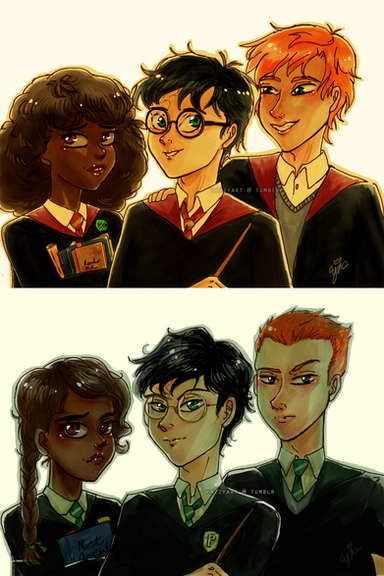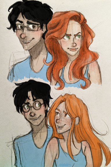 Teddy's hair is nice and messy! My head cannon is his hair still changes a bit when he's with people he loves, so it's extra messy around Harry. This drawing might be my new head cannon for both!