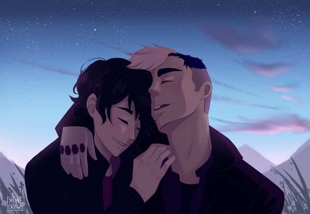 I was about to swipe to the next Klance drawing because this was all pixelated, but then it became in focus and my mind was blown! The mood this masterpiece sets is a similar one that is in my favorite book so to me this really speaks to me. ;3 keep up the good work!! π