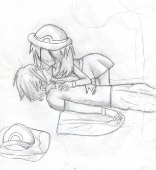 Ruby: *catches her, so she being surprised stops moving* " " Whatever *kisses her gently*