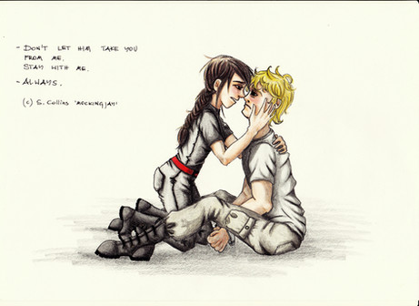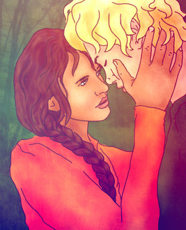 Katniss and Peetaaaa from the Hunger Games. At this point in the book, I was sobbing uncontrollably and so it was a tad difficult to read.Texture used: [link]