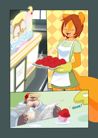Okays, here's the color version of Helping which I posted a few days ago. This is part of something I hope to develope much further as time goes on here. ;3So yeah, this would be cute tiny Peaches helping her mom bake some red velvet muffins when she was little.