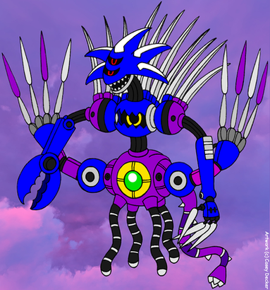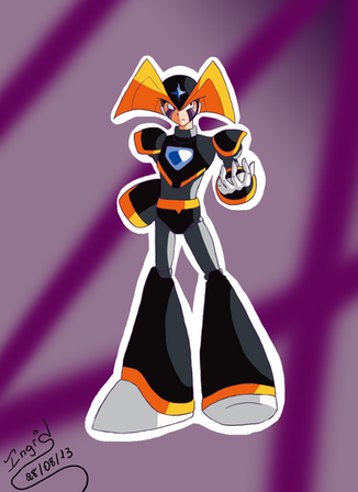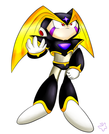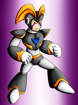 Well, the picture of Bass that I used as a reference had him with dark brown eyes and a purple diamond on this chest, which was a picture from one of the games.