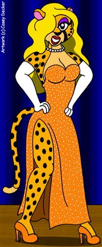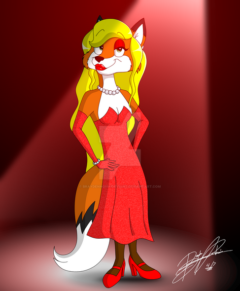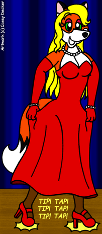 Here is a picture that I did as kind of a gift for my best friend : A picture of her original character, a female Saluki named Sabina, cosplaying as Jessica Rabbit from the movie "Who Framed Roger Rabbit". Because I wasn't too busy doing anything else at the time, I was in the mood for wanting to draw another picture of Sabina in my original cartoon style, which would be based on a random idea after having one of my favorite movies on my mind recently (other than the fact that 2018 also happens to mark the 30th Anniversary of "Who Framed Roger Rabbit" as well). For this picture I've done, I was able to draw a simple picture of Sabina posing as Jessica by wearing her outfit that consists of a sparkly red dress, long purple gloves, and pink high-heeled shoes while also having her hair colored from brown to red-orange. When I was coloring the picture in, I was able to use a dark blue texture for the background, and I decided to fill up much of the empty space by adding yellow stars in different sizes. The picture turned out very nice after being completed, and I just know that my best friend will love it no matter what.Sabina The Saluki (c) Auwawau
