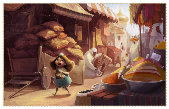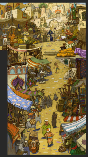 The composition you've gone for works really well drawing the viewer deeper into the painting, although my eye tends to linger on the lantern seller because I just love the colours you've used and the lantern designs.
