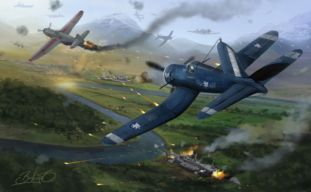 The framing and the minute details definitely solidify the piece all together but the perspective really reminds me of Ace Combat Assault Horizon; not that it's a bad thing, because it's a perspective detached enough to see the gritty details and close enough to feel the action.