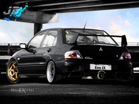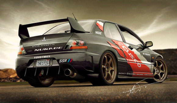 Like the tittle says, It's a rear view of my matte black Lancer Evo IX I did a while ago with some upgrades. [link]