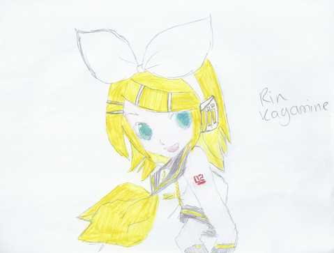 This is a request for . I hope you guys like it! It's my first time drawing her, so it may not be perfect... I used Copic markers to color this picture in and yeah! Rin is from Vocaloid BTW...Related content