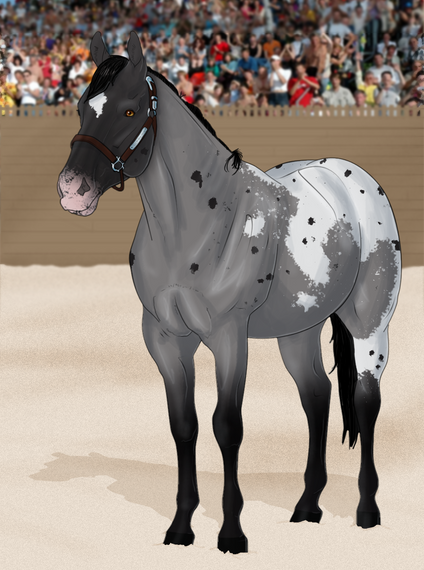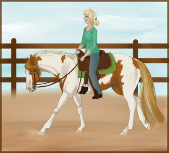The muscles in Saint's back tensed somewhat when Noel threw her leg over him, and scooted herself into position. Gathering the reins, she trotted him in a wide circle before asking the young stallion to reverse and trot the opposite direction.The simple warm-up relaxed Saint, and got both him and Noel used to the feeling of her astride him without a saddle. "I've always wanted to do this," she whispered conspiratorily to her mount, asking with both the rein and subtle pressure from her leg to turn him towards the show ring.