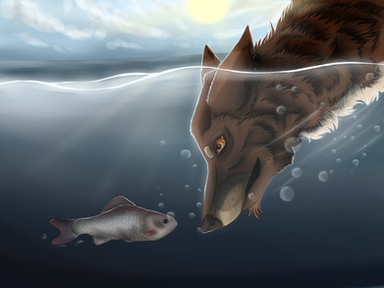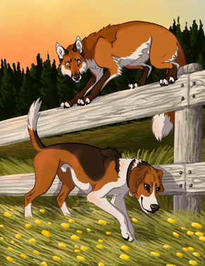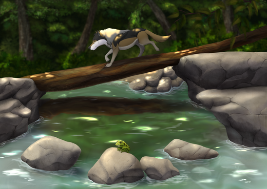 This used to be called ‘Swamp Hunter’ but then the bg turned into a lake...More development art for the comic; in this one I figured out the look of Sedge the coyote, who is about to get an involuntary bath from the beaver.