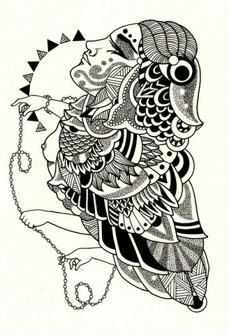 That's very pretty. I really like the line work and figure stylization. Nice motifs and fine concept. Creative visuals.