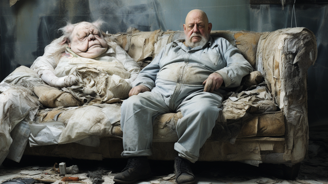 #ai #bizarre #couple #digital #digitalart #enigmatic #fatman #generative #mixedmedia #oldman #strange #weird #bizarrecreature #generativeart #aiart #promptart #aiartcommunity #midjourney #midjourneycommunity #synthography