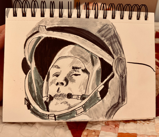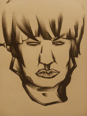 Drawing in Indian ink on a published photo of newspaper and photographed.The medium used allows to explore the line.