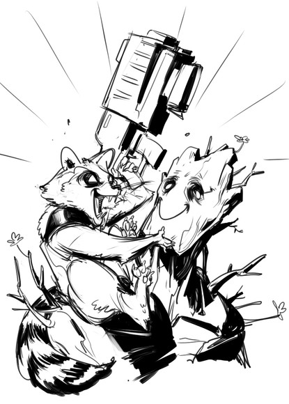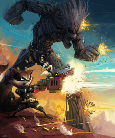 Aww yeah! That's some killer work! Rocket and his guns; where does he keep something that big?