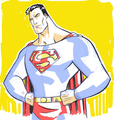 I love your portrait of Big Blue (I'm definitely of the opinion that CK should be more beefy than ripped), but must say that I profoundly disagree with the eponymous KILL BILL on every level; Superman was born Kal-El of Krypton, he had to LEARN how to be Superman (and it was the Kents who helped shape him into Big Blue just as surely as Ma Kent sewed up those eponymous long johns) and if Clark Kent were Superman's critique of the whole Human Race then the mask became the man the moment he married Lois Lane (HUMAN).
