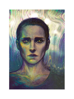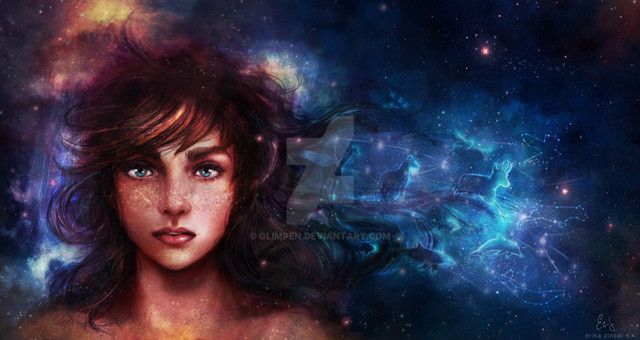 totally gorgeous...i love that her skin isn't flawless, it makes the whole piece more textured, and the freckles and stars make a neat comparison in theme....keep doing what you do