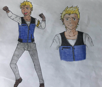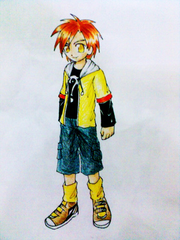Like the vocaloid Len Kagamine, with demon torture XD. He looks so cool. I love the yellow theme colour and casual design.