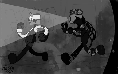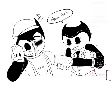 this one is based off of metallicartist herself and even my own icon walking down the studio together trying to find a way out of the studio!just hope we dont run into any searchers or even "Bendy" himself that is... hehehe