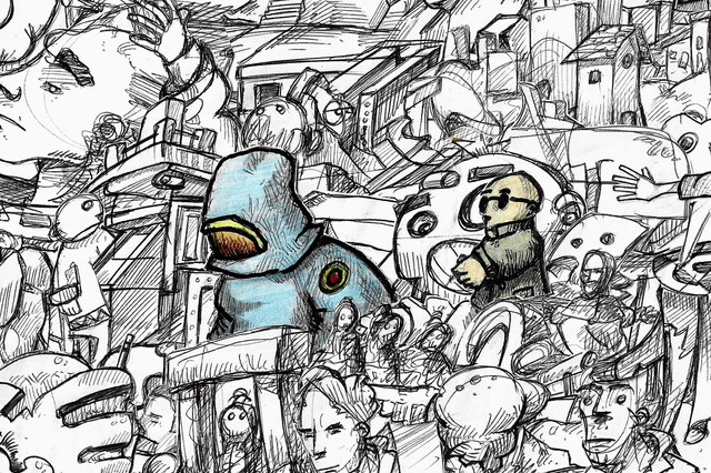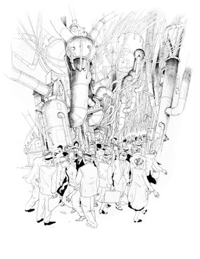"I do not work out of ideas or inspiration (I have to when doing commissions though). I draw the same way I did as a child: the image evolves from the first lines, so I follow the pen's lead and whatever happens to happen."