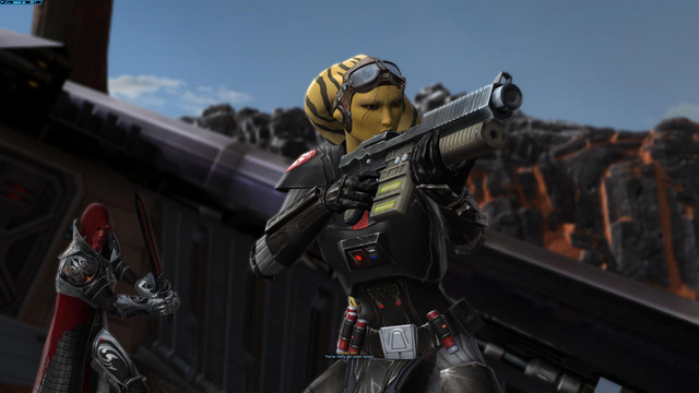 Star Wars: The Old Republic - Screenshots, not art, but great timing can still yield great resultsMy Bounty Hunter Eda beginning her adventures of the "Knights of the Fallen Emperor"