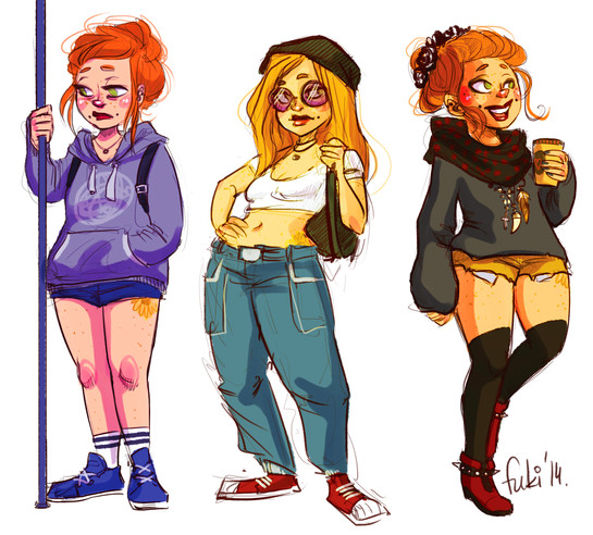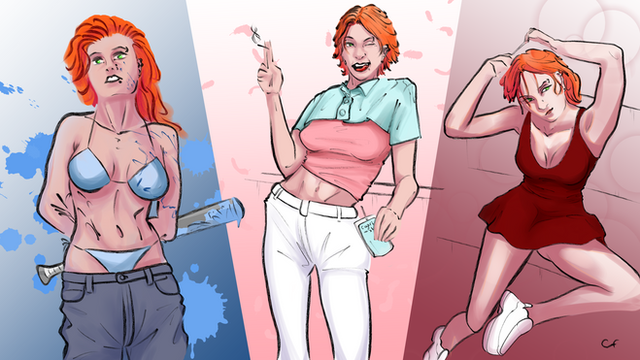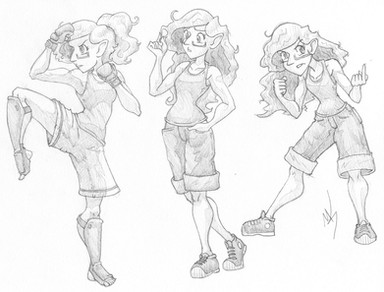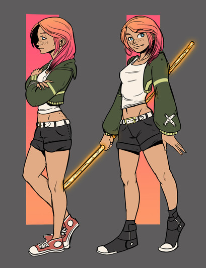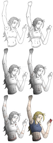 So, I've been working on pages for Skitterpunk Hellsprite in recent weeks and it's a laborious process. The more I do it, the more I try to simplify not only my lines, but my colors. The somewhat recent 4th of July fav.me/d7p7h4t picture was a step in that direction. Here, #3 is the colored version of #1 lines. This is pretty much where I had settled on my "everyday" Skitterpunk lines in recent months, and the colors are fairly common of the simplified colors I've been working toward the last few weeks. # 2 and # 4 take it a step further. I've been studying the old 80's anime cel style I love so much (think Project A-Ko, Bubblegum Crisis and Dirty Pair) and decided to take out most of the inner hair lines. They let the simple shading fill in the details instead of a bunch of complicated lines. Comparing just the lines on, I'd go with #1, hands down, but I find I like #4 colors about the same as # 3 and it would make things a little easier on me during colored pics. EDIT: I've since drawn back in a couple of the inner lines as suggested by dragonariaes . But simple and just a couple. Seems like a good compromise. On the Skitterpunk Hellsprite facebook page www.facebook.com/SkitterpunkHe… I've been showing other pictures and characters where I've been experimenting with simplification, some of which are not up on deviantART, if anybody cares to see that.Related content
