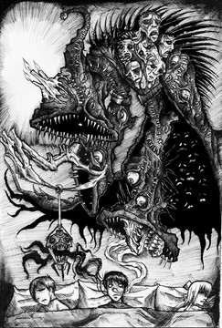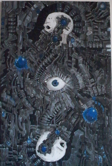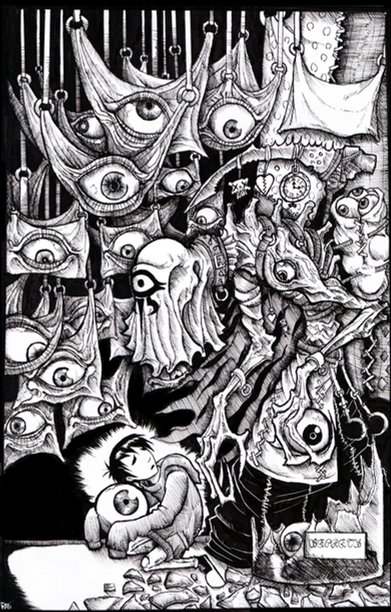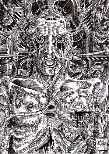 im not rly sure on a name for this, this pretty much was a style practice, im trying to get a H.R-giger feel to my work. and at the same time not trying to totally copy him.all done with inks. i was half insane after finshing this XD