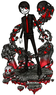 Matty, his not a demon, his the soul of a murderd child resurrected by a necromancer who's black magic has made twisted and deraged, about 300 years ago, Anton olver "AKA' Matty was murder by a necromancer/blacksmith name doctor Clock worth (pic of him [link] ) his reasons why still unknown, but after resurrecting him and binding his soul to elements of evil Matty became clock worth's mind slave, until he broke free of the necromacer's spells, him and the other childrend clock worth resurrected turned agaisnt him, but killing clock worth only stoped the magic that kept the resurrected children alive, so they where bannshed, but not Matty, with the ably to poccess bodys he's been jumping from body to body till now, he found Matt [link] and wich is what pretty much makes Matty now dewells with in Matt, but for some odd reason Matty is stuck?yayy i finaly drew matty, the reason why Matt is matt, well not rly, Matt him self is insane and deraged but Matty is what gives Matt his power and rage, ^^