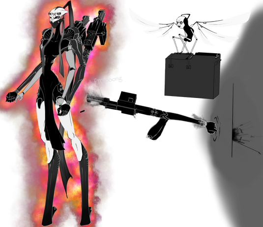 some thing I did in my spare time while working on film, I wanted to show more of Danny's abilities, his claw arm cannon charging for a blast, to note, depending on the configuration of his claws, determines the size and blast range, or even in beam or can even be used as a beam sword, but also with the use of his back/shoulder claws, can shape into black wings that give him flight, thou, I may limit them, I see danny as more of a grounded character, using long jumps and short burst flight, but, since he is a tyrant of Viruses, I may give him flight later, meh,yeh also yay for prospective and hight lights! and more of that hawt boi's slim body in that black tight suit ouo unnff, *reveals the real reason i luv drawing danny*
