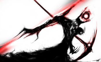 Have no idea what this is I drew this purely from thought and experimenting with black looking blades and skeleton arms.